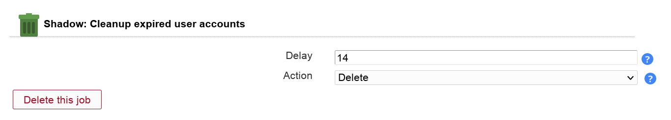 You can automatically delete or move expired accounts. The job checks Shadow account expiration dates (not password expiration dates).