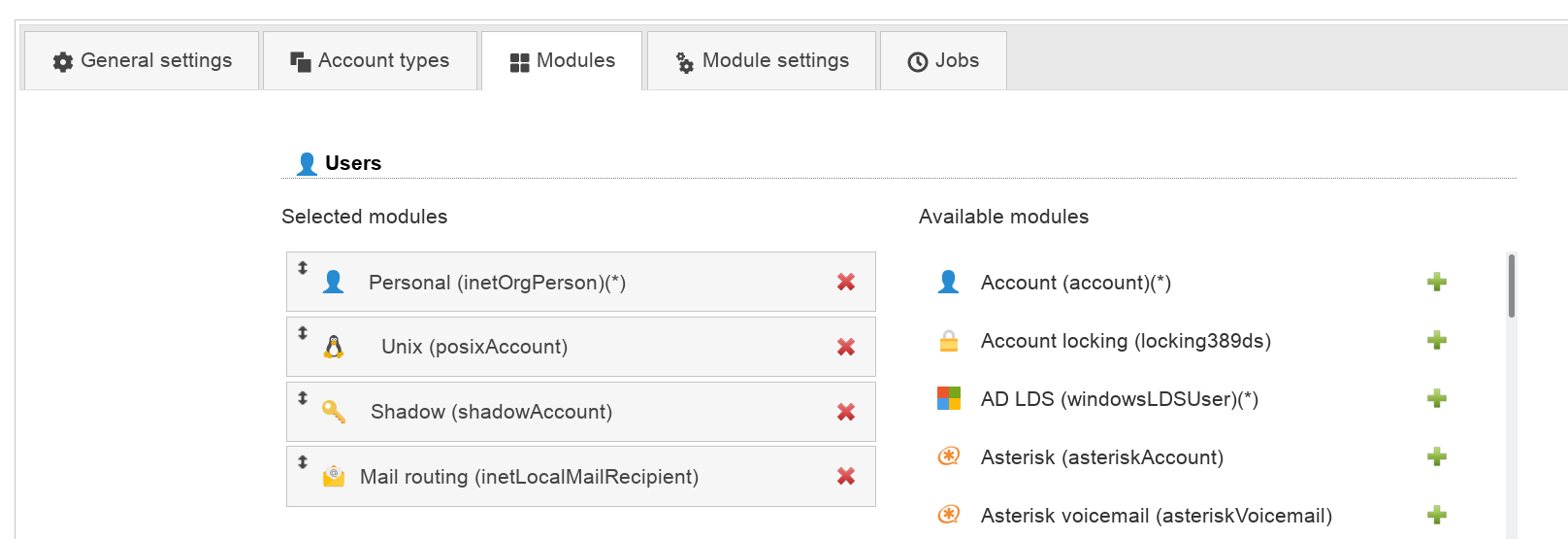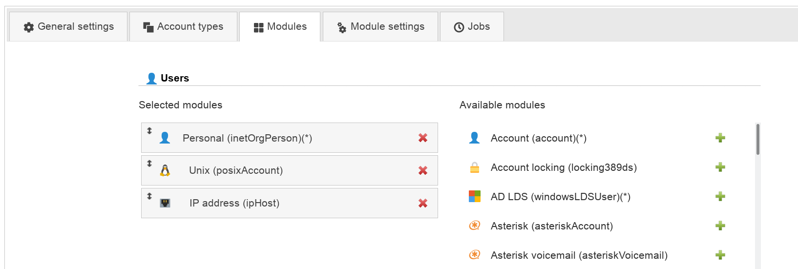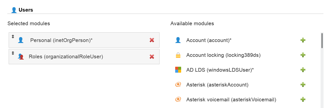 This is a very simple module to manage accounts based on the object class "account". Usually, this is used for host accounts only. Please pay attention that users based on the "account" object class cannot have contact information (e.g. telephone number) as with "inetOrgPerson".