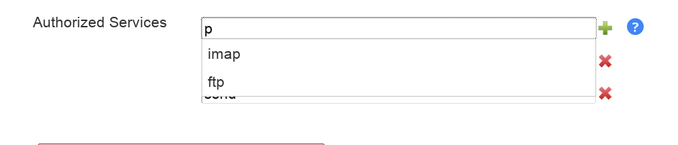 The autocompletion will show all values that contains the entered text. To display the whole list you can press backspace in the empty input field. Of course, you can also insert a service name that is not in the list.