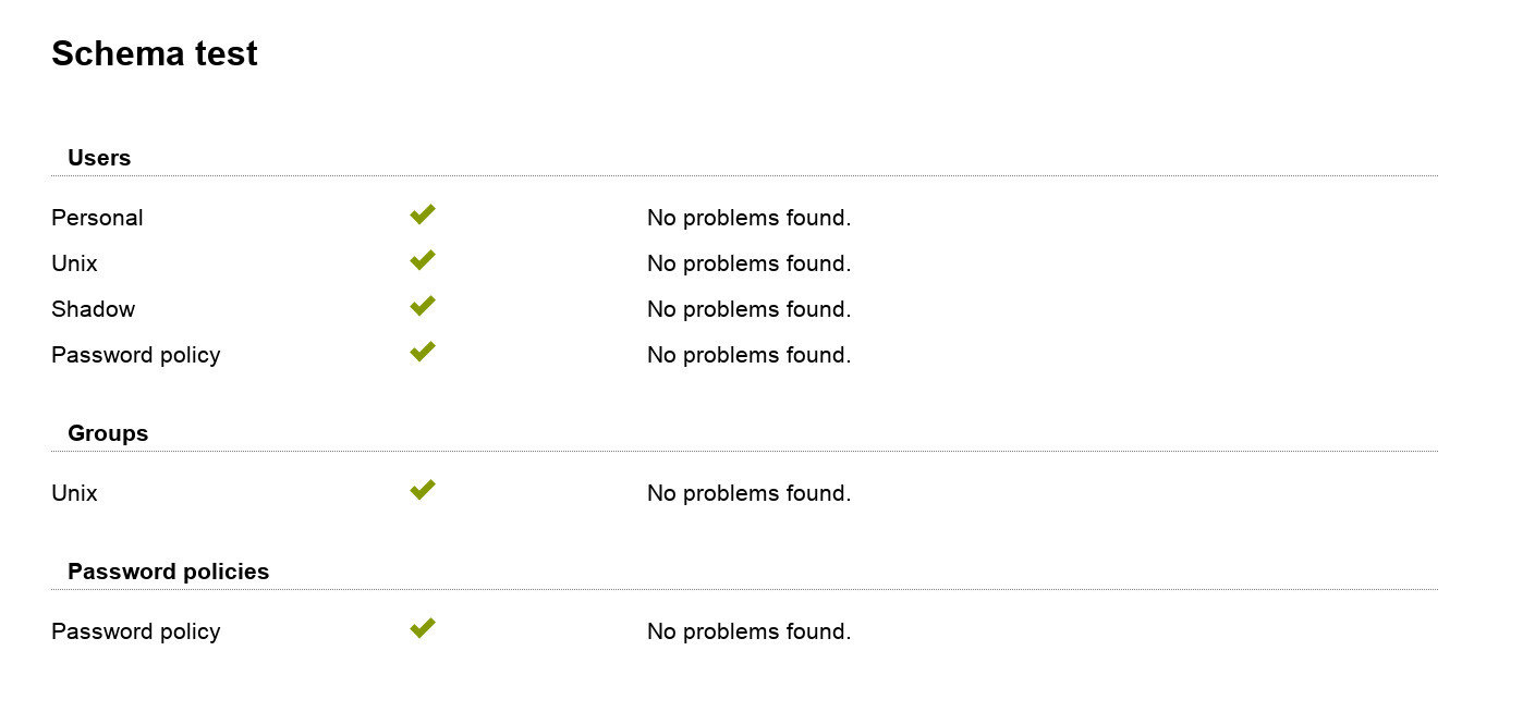 This will test if your LDAP schema supports all object classes and attributes of the active LAM modules. If you get a message that something is missing please check that you installed all required schemas.